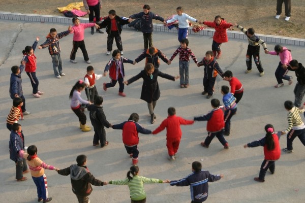 跳跃、牵手、滑步、绕圈……草店镇小操场上音乐欢快。随着舒缓的旋律,一群群学生翩翩起舞,男女学生或转圈或牵手,他们在跳《第一套全国中小学校园集体舞》,学生们个个神采飞扬、充满活力,他们一会儿手拉手,一会儿拍拍手,有时拍成一列,有时转成圆圈,不时变换着队形,运动中的校园朝气逼人。