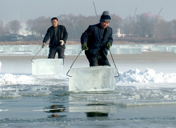 眼下,黑龙江省牡丹江市境内的牡丹江已进入封冻期,生活在江边的农民纷纷前来采冰,为一年一度的“牡丹江雪堡”建设提供冰源,或储存起来到明年夏秋季出售,增加收益。图为12月6日,几名农民在江面上采冰。