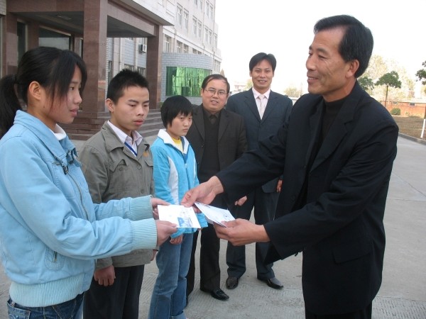日前,东方明珠大酒店工作人员为烈山中学贫困生带去冬日温暖,将1200元助学金递到贫困生手中,并鼓励这些孩子努力学习。据了解,近几年,该酒店热衷于社会公益事业,帮扶济困募捐资金10万元。 (见习记者 杨闻名摄)