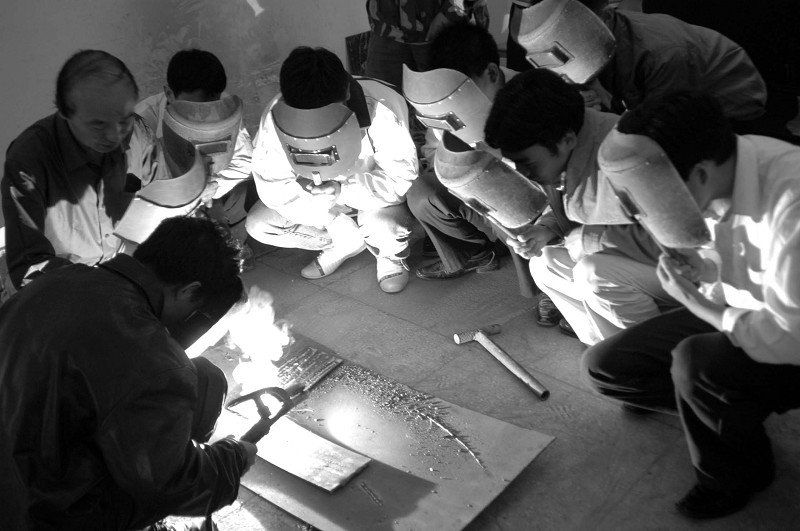 使许多进城的农民工、下岗职工有了培训机会。图为农民工在进行电焊技能培训。(本报记者陈德友摄)