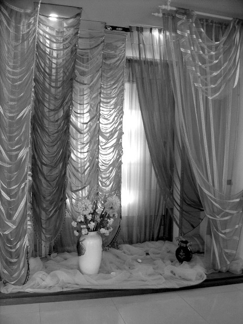 再次,应考虑窗帘的式样和尺寸。在式样方面,一般小房间的窗帘应以比较简洁的式样为好,以免使空间因为窗帘的繁杂而显得更为窄小。而对于大居室,则宜采用比较大方、气派、精致的式样。窗帘的宽度尺寸,一般以两侧比窗户各宽出10厘米左右为宜,底部应视窗帘式样而定,短式窗帘也应长于窗台底线20厘米左右为宜;落地窗帘,一般应距地面2~3厘米。