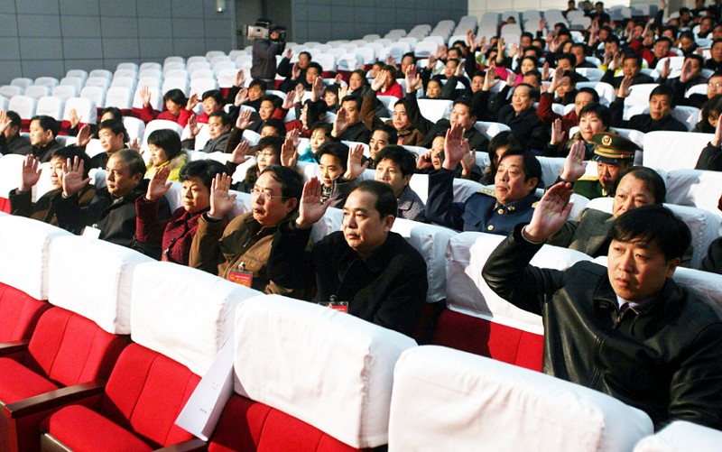 1月7日上午,市二届人大二次会议举手表决方式通过各项决议,胜利闭幕。 (本报记者 孙洪涛摄)