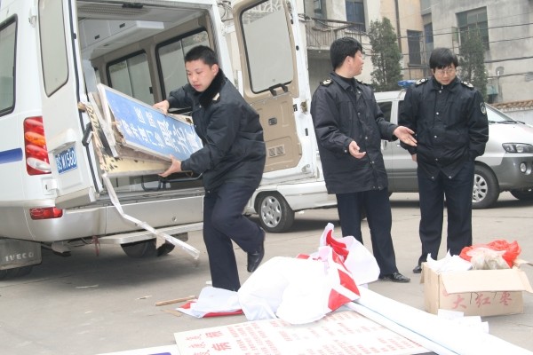 1月8日,市卫生监督局对城区非法行医进行专项整治,取缔非法行医窝点2个,收缴标牌5幅,药品2箱。 (徐军国/摄 焦旭东/文)