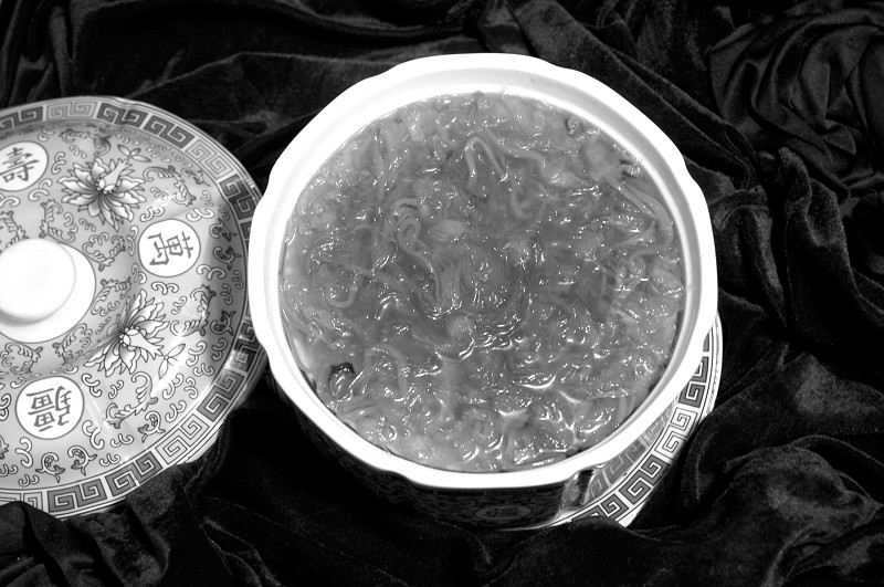 制作方法:(1)水发鱼翅加姜汁20g、料酒20g焯水;(2)海参丝、金元鲍丝,鳘肚丝加姜汁20g焯水,起锅放上汤650g,加入鱼翅、鲍、参、肚丝,加盐3g、味精1g、鸡粉1g,试味后勾芡,撒胡椒粉即成。