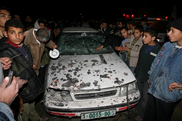 1月17日,巴勒斯坦民众在加沙北部地区检查在以军空袭中被毁坏的汽车。以军当天两次向加沙地带发射导弹,炸死至少5人,另有6人受伤。 (新华社发)