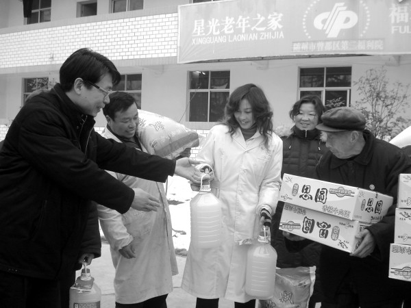 图三:1月18日,曾都区厉山镇三中组织人员冒雪带着250公斤大米、10件方便面、4提食用油等物资来到位于该镇的曾都光荣院,给在这里安度晚年的100余名老复员军人送去新年的祝福。唐天才/文龚承斌/摄