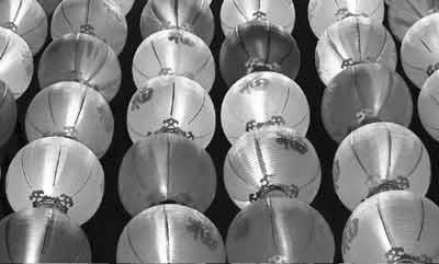 无论什么场所,大红灯笼一挂,那气氛马上就出来了。大大小小的红灯笼、平安灯,材质以棉布、塑料以及不同档次的缎面为主。形状有圆形、腰鼓形、八角形等;图案则除了福字,还有恭喜发财、万事如意、金童玉女等。