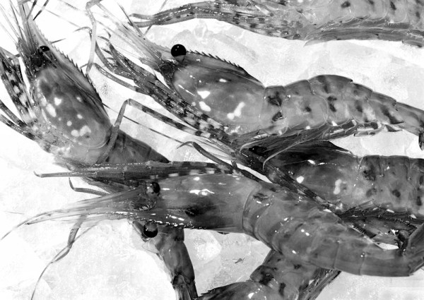 鲜虾头部完整,体部硬朗、弯曲。青虾、明虾的壳呈灰绿色。