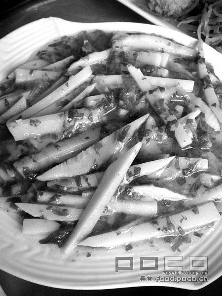 1.净熟冬笋切成劈柴状,荠菜择洗干净,用开水氽一下,捞出放进冷水里冲凉后,挤出水分,切成粗末,熟胡萝卜切成末待用;