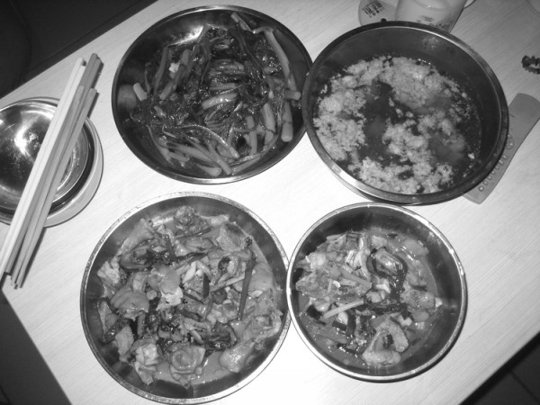 晚餐:冷盘:桂花糯藕、葱油牛百叶、酸辣白菜、腊鸡腿。