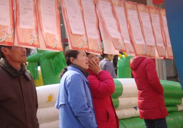 2月14日“情人节”当天,随州香港街中心广场举行了万人“相亲”大会,为城区大龄青年提供了一次难得的寻缘机遇。相亲会上,许多家长代子女前来参加相亲。 (本报记者 李文军摄)