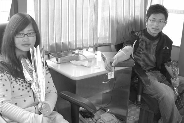 2月14日,一些情侣纷纷走上街头无偿献血车,献血纪念爱情。(徐军国/摄 徐勇斌/文)