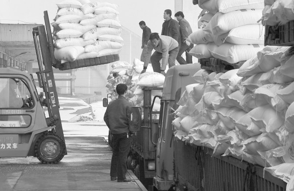 2月17日,中国石油宁夏石化公司员工往汽车上装化肥。今年宁夏全区普遍降雪,土壤墒情较好,为保证农民春耕用肥,宁夏回族自治区供销社与化肥生产厂家签了近20万吨主要化肥的购销合同,并充分发挥全区供销社系统农资供应主渠道作用,积极调运储备化肥备战春耕。(新华社发)