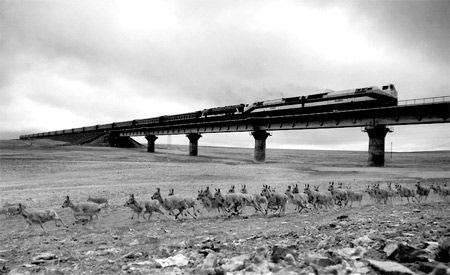 “这是一张大家都很熟悉的照片,当初看到它的时候曾经让我眼前一亮:青藏铁路上的火车和野生动物通道上的藏羚羊在同一个时候出现在作者的镜头之中,多么精准的一个决定性瞬间啊!但前日,我突然发现,在图片的最下方,有一道十分明显的线,明显是一道拼接的痕迹……”(见左图)2月12日,一个名为《刘为强获奖藏羚羊照片疑似造假》的帖子出现在了全球最大的中文摄影网“色影无忌”上。