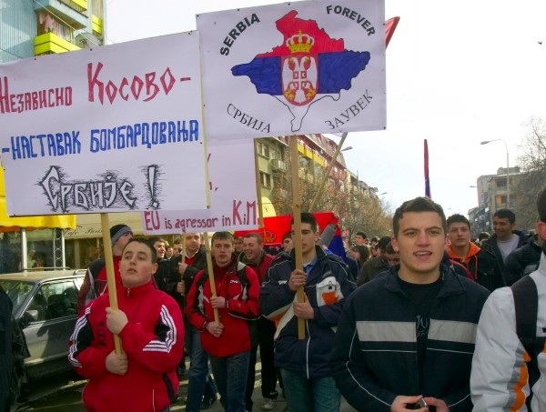 2月18日,在科索沃塞尔维亚族聚居地米特罗维察,一些当地塞族人集会,反对科索沃单方面宣布独立。