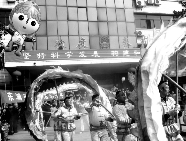 曾都区东城办事处文艺表演队表演的龙腾闹春。 (见习记者 杨闻名摄)