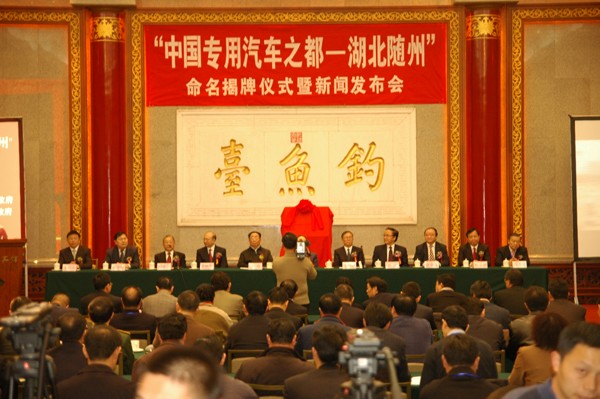 本报北京电 特派记者陈长军、李文军报道:3月2日,北京钓鱼台国宾馆6号楼,欢快的音乐、红红的灯笼,喜庆,吉祥。中国机械工业联合会和湖北省人民政府在这里隆重举行“中国专用汽车之都——湖北随州”命名揭牌仪式暨新闻发布会。