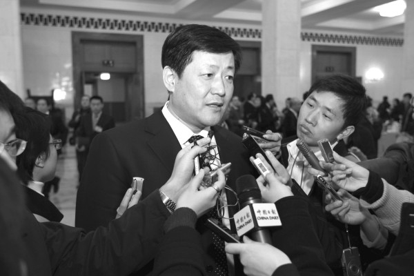 三月三日,中国人民政治协商会议第十一届全国委员会第一次会议开幕。图为开幕会结束后朱建民委员接受记者采访。(新华社发)