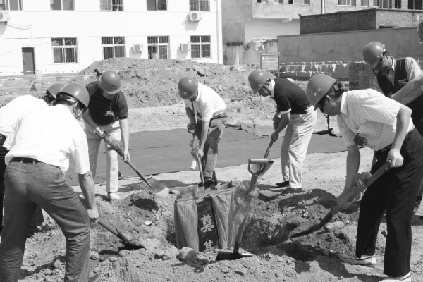 ▲2007年9月19日,市、区供电公司和淮河镇领导为变电站开工奠基。