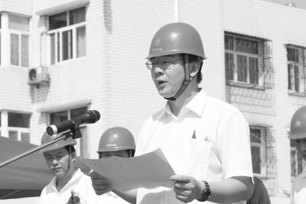 ▲曾都区淮河镇委书记、镇长汪家强在开工仪式上致词。
