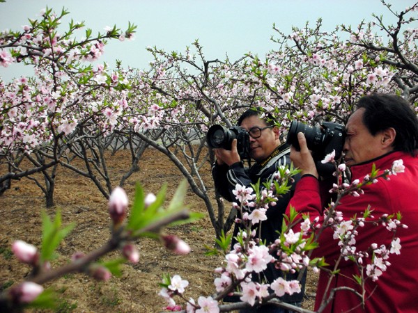 灿如云霞的桃花映红了曾都区尚市镇的田野山岗。17日下午,我市一群摄影者和游客来到该镇桃花林里拍花赏景。