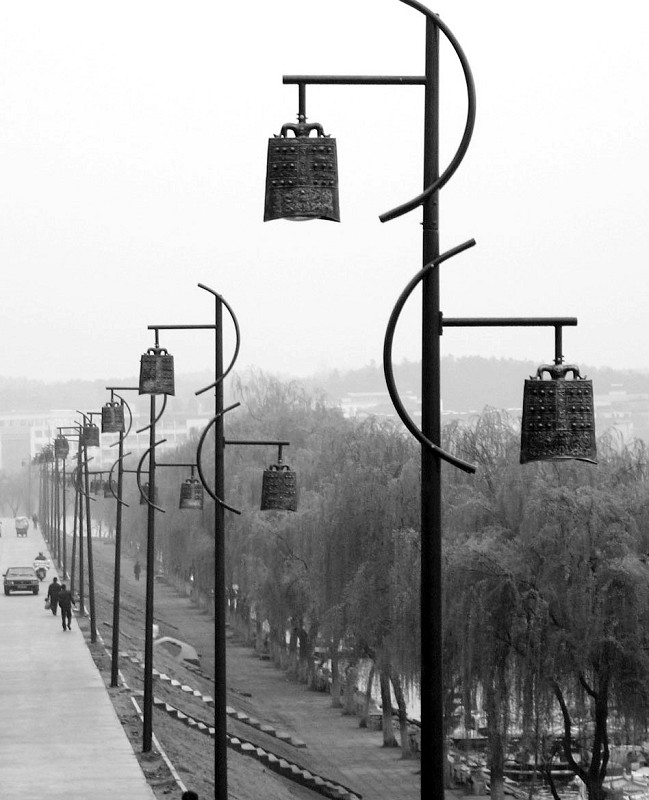 3月21日,72盏 “编钟”造型的路灯陆续在白云湖东大堤“上岗”,翠柳与编钟造型的路灯构成了一道靓丽的风景线。