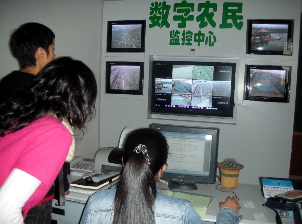 近来,浙江宁波慈溪市出现了一批“数字农民”。他们只需打开电脑,登入互联网,进入数字远程监控平台,就可以用电脑遥控管理农田。这些“数字农民”都加盟了慈溪市蔬菜开发有限公司,并使用其公司开发的一套数字远程信息系统。公司在经营的1.2万亩农田上装起电子探头,并将农田信息档案和各类蔬菜种植要求输入数据库。计算机能根据土壤养分,自动分析出氮、磷、钾等养分的推荐用量,达到精准施肥。农民即使人在外地,一样可通过电话遥控,通过帮工管理农田。据悉,目前慈溪已有100多户农民用上了该系统,平均每个农民能管理五六十亩土地,比过去扩大了近10倍。图为慈溪市的“数字农民”在监控中心通过摄像头观察田地情况。 (新华社发)
