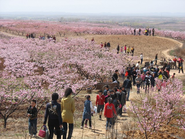 昨日,曾都区尚市镇群金村迎来了武汉、襄樊等周边地区游客数千人观赏桃花,满山遍野人流如织 (图譹〇)。