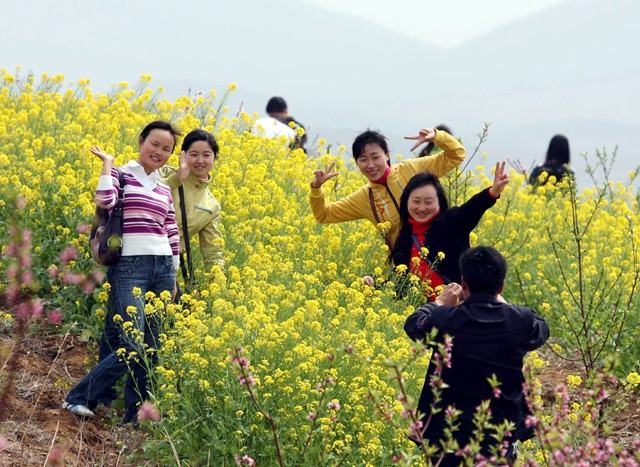 阳春三月,暖融融的春光给人们郊游带来了好心情,城里姑娘们来到乡村田野,用相机定格了春天的美丽。