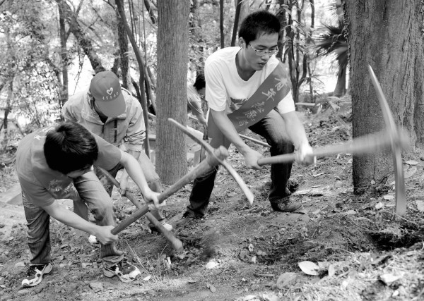 5月3日,福建工程学院的青年学生在福州熊猫世界义务种植竹子。当日,福建工程学院300多名学生组成的青年志愿者服务队,来到福州熊猫世界进行种植竹子和清理环境卫生等义务劳动,以实际行动迎接“五四”青年节的到来。 新华社发
