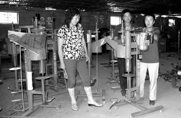 曾都区殷店镇忤水关村农民王学国,多年来潜心研制食用菌机械,由他研制的袋料装袋机、扎口机和菌种装袋机不仅大大减轻了劳动强度,还提高了生产质量和效益。如今,他研制的产品因操作简便,质量过硬成为市场抢手货。 (陈琰 摄)