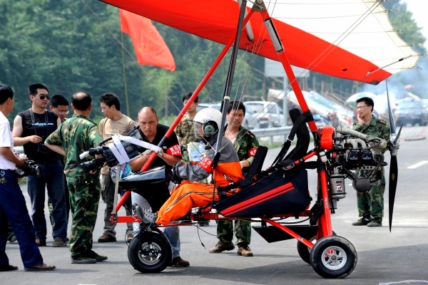 六月九日,四川省军区使用两架三角翼飞行器对直升机失事区域进行可疑点排查,以配合地面搜寻人员实施陆空联合拉网式搜寻。三角翼飞行器具有轻便灵活、对天气适应性强、低空低速等特点。(新华社发)
