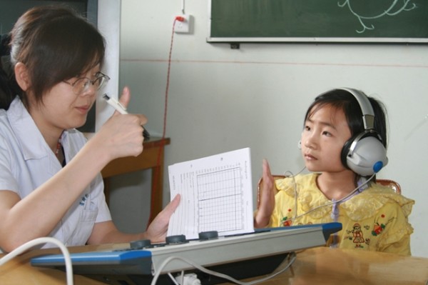 专家在测试小孩听力