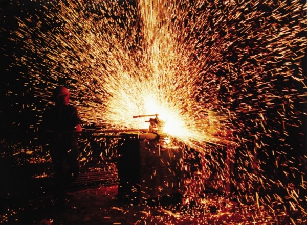 近日,在我市一建筑工地,工人师傅正在切割钢筋,火花四射,在劳动中创造美,在光和影中谱写生活乐章。 (本报记者 杨闻名摄)