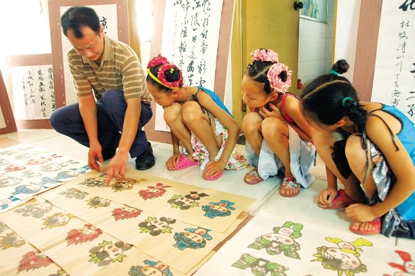曾都区厉山三中美术教师李海涛,用三个月的时间画了百幅“福娃”像祝福奥运,深受师生喜爱。(本报记者李文军摄)