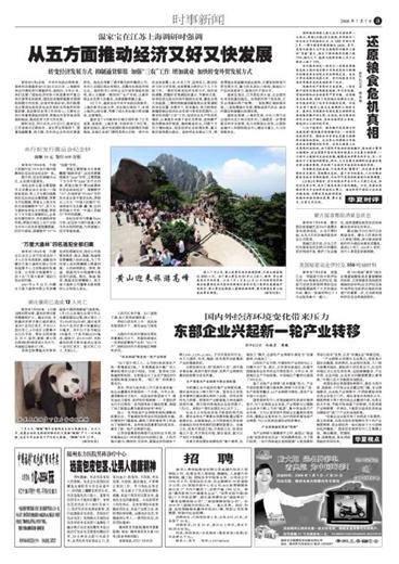 新华社7月6日电 中共中央政治局常委、国务院总理温家宝4日至6日在江苏、上海就经济运行情况进行调查研究。他指出,今年以来,我们克服了国际经济形势不利因素和严重自然灾害带来的困难,国民经济