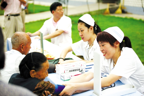 曾都区厉山卫生院的医务工作者日前来到曾都区光荣院,义务为该院的老战士进行身体检查,并向他们送去了两千多元的药品。(本报记者孙洪涛摄)