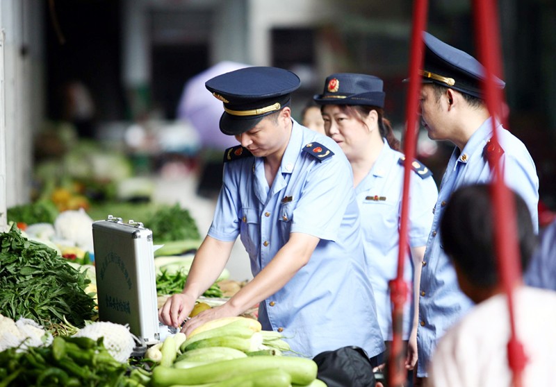 随州市工商局开发区分局日前配置先进检测仪器,定期对所辖农贸市场的蔬菜进行农药标准检测,对农药超标的蔬菜责令摊主撤柜销毁。 (记者 孙洪涛摄)
