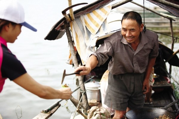 一图:渔家饭对城里来的游客充满了诱惑,遇上开饭的时间,渔民们也乐意让他们尝一尝。