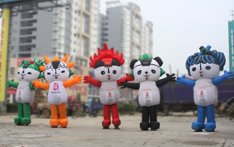 7月28日,奥运福娃亮相随州街头,吸引不少市民期盼奥运的眼光。福娃“贝贝”、“晶晶”、“欢欢”、“迎迎”和“妮妮”名字连在一起谐音“北京欢迎您”。 (本报记者 杨闻名摄)