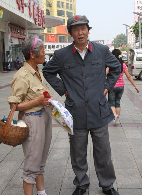 昨日,应我市一家影楼邀请,长相似伟人毛泽东的杨立达先生来到随州。街头,一些市民与其合影。(本报记者杨闻名摄)
