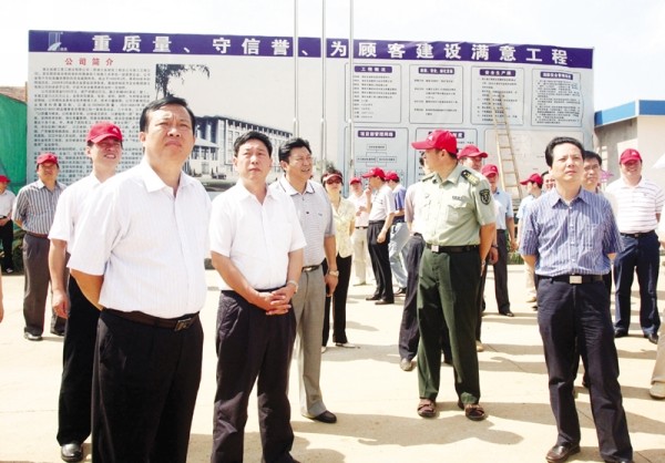 昨日上午,市委书记马清明(前左一)、代市长刘晓鸣(前右一)率领的我市党政代表团,在鄂州市委书记李德炳(前左二)的陪同下,考察鄂州的部分企业。(本报记者孙洪涛摄)
