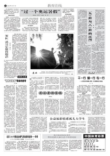 明天,奥运就要来了!无法到北京看奥运会的我市一些中小学生怎样参与到奥运中来?他们喊出了“过一个奥运暑假”的口号,用热心和实际行动来表达对奥运的支持和热爱。 因奥运而激动 放暑假了