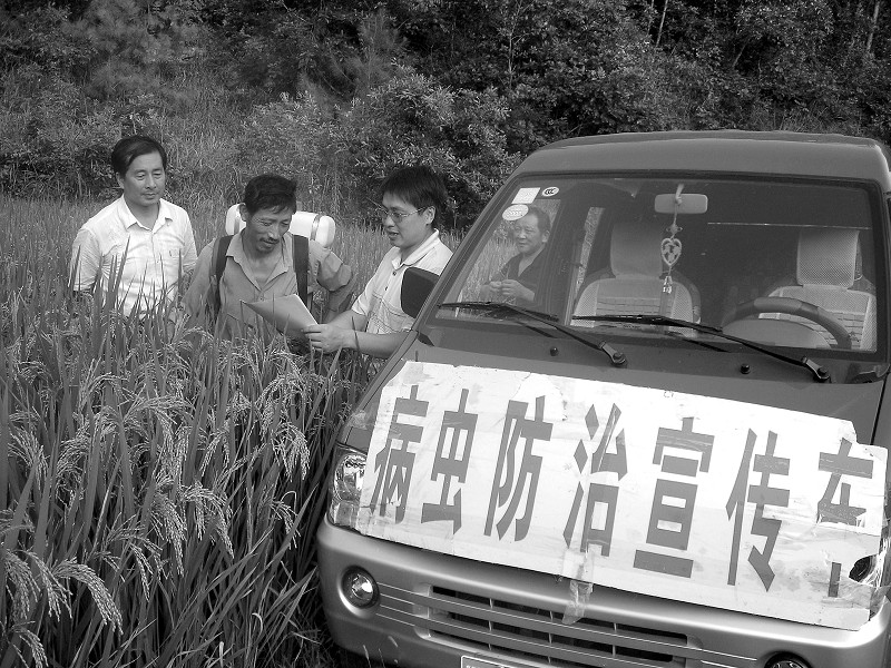 针对当前水稻病虫害爆发实际情况,曾都区采取及时发放农情预报、保证农药供给、开展技术指导和虫情监测等多种措施加强农作物防虫治病工作,确保秋粮丰收。图为农技人员在柳林镇团结村指导农户防虫治病。 (程立健摄)