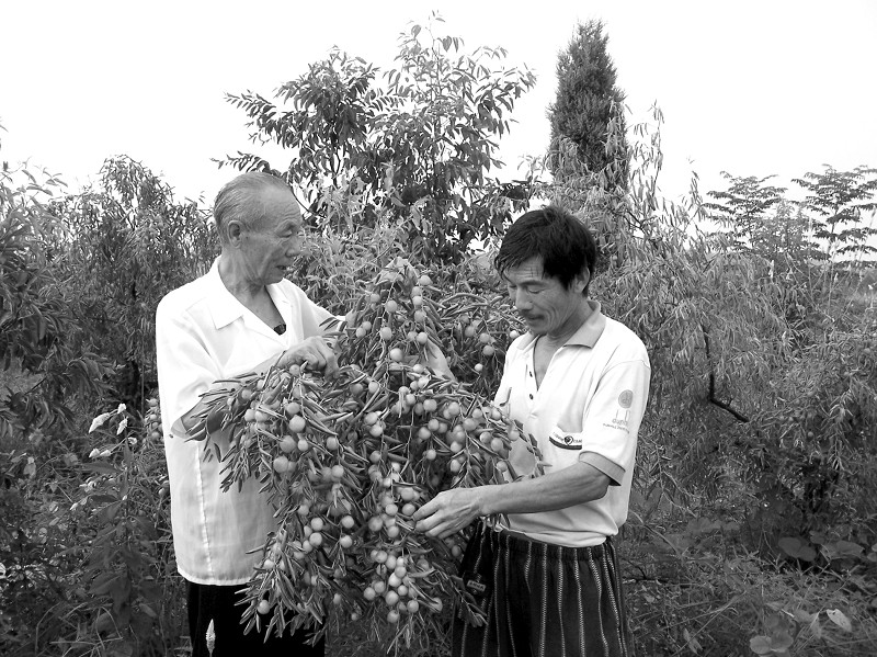 广水市关庙镇大枣种植面积4000余亩,随州市、广水市老促会为使枣农早日致富,他们筹措资金,聘请技术员,购买优良品种。今年,该村可产沾化冬枣、梨枣近20万公斤,枣农增收40余万元。(本报记者宋俊超摄)