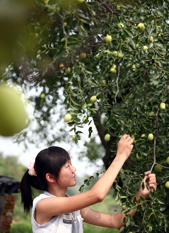 曾都区唐县镇的枣农日前在枣园里采摘大枣。据介绍,该镇今年五千多亩大枣喜获丰收,种枣制枣成为当地一大特色。(本报记者孙洪涛通讯员柳能摄)