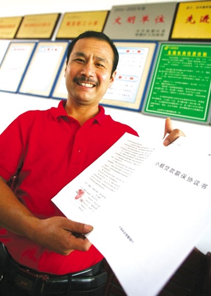 九月十一日,曾都区万和镇农民邱浩展示他刚刚签订的小额联保贷款协议书。