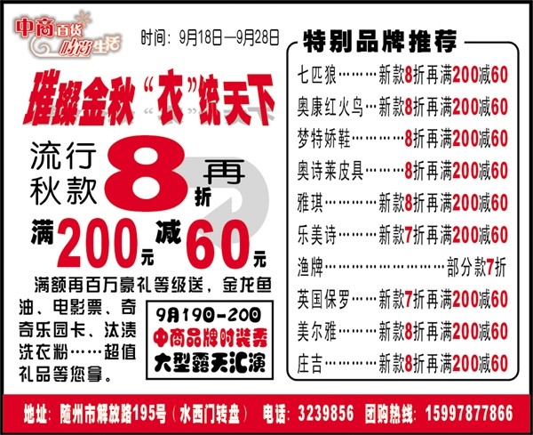 更多惊喜酬宾活动详见购物中心门前及卖场公示