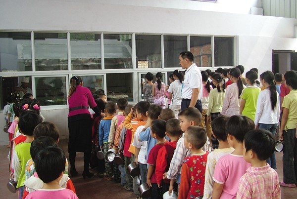 “危房食堂”拆除以后,学校腾出两间校舍作食堂操作间,设施不配套,卫生条件差。再加上没有学生餐厅,学生只能在土沙地面的操场上吃饭,真正的是“晴天一身灰,雨天一身泥”。大洪山风景名胜区中心学校多次下决心改变这一状况,但限于学校财力,未能如愿。