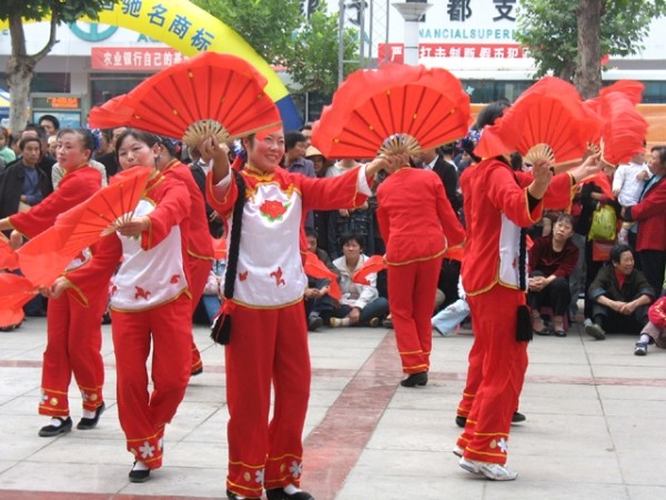 左下:昨日,随城新世纪购物中心门前,一场传统的民俗文艺表演吸引了数以千计的市民驻足。